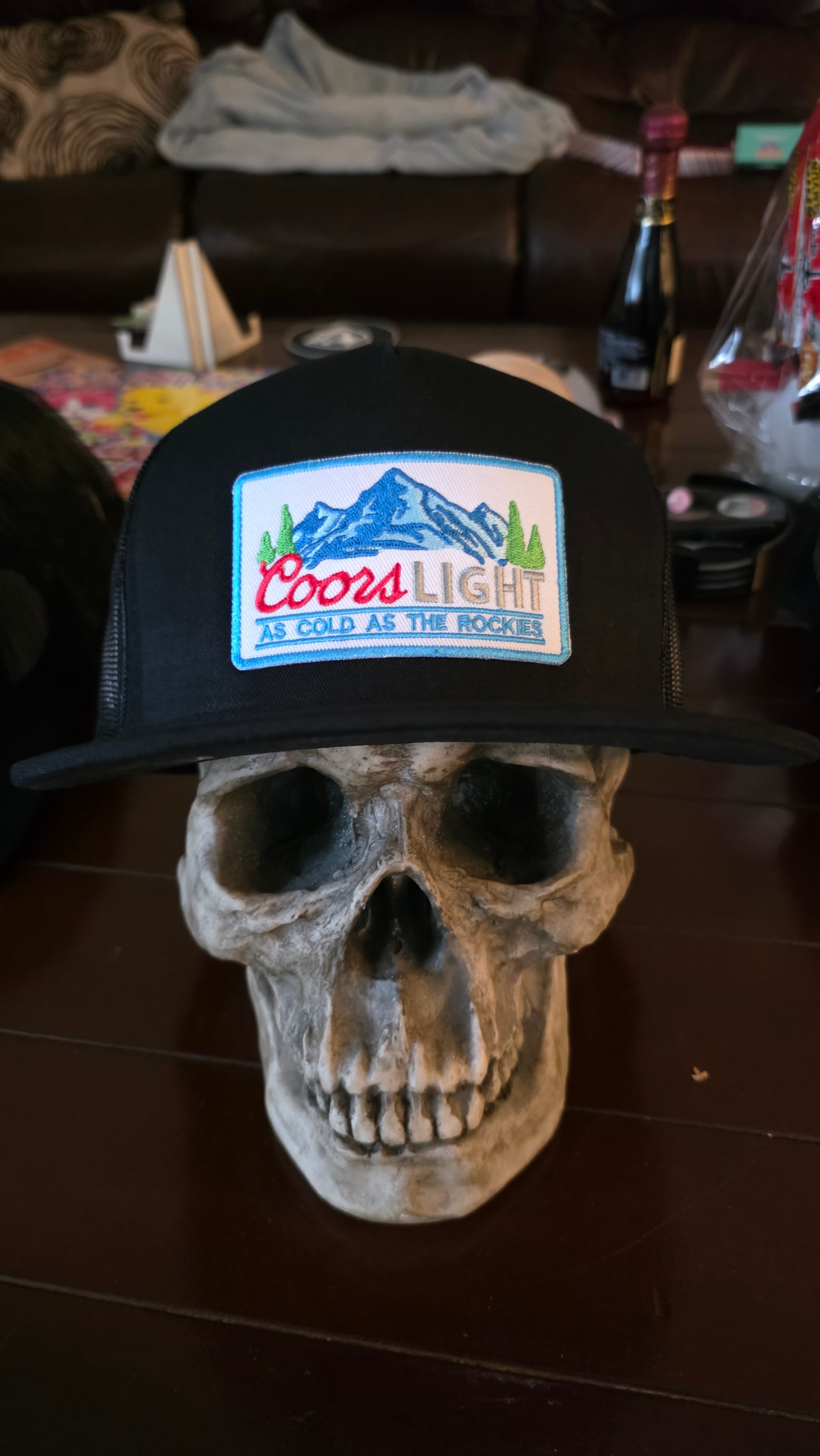 Solid black top level Trucker hat. Fits similar to Yupoong classic. Flat but bendable brim